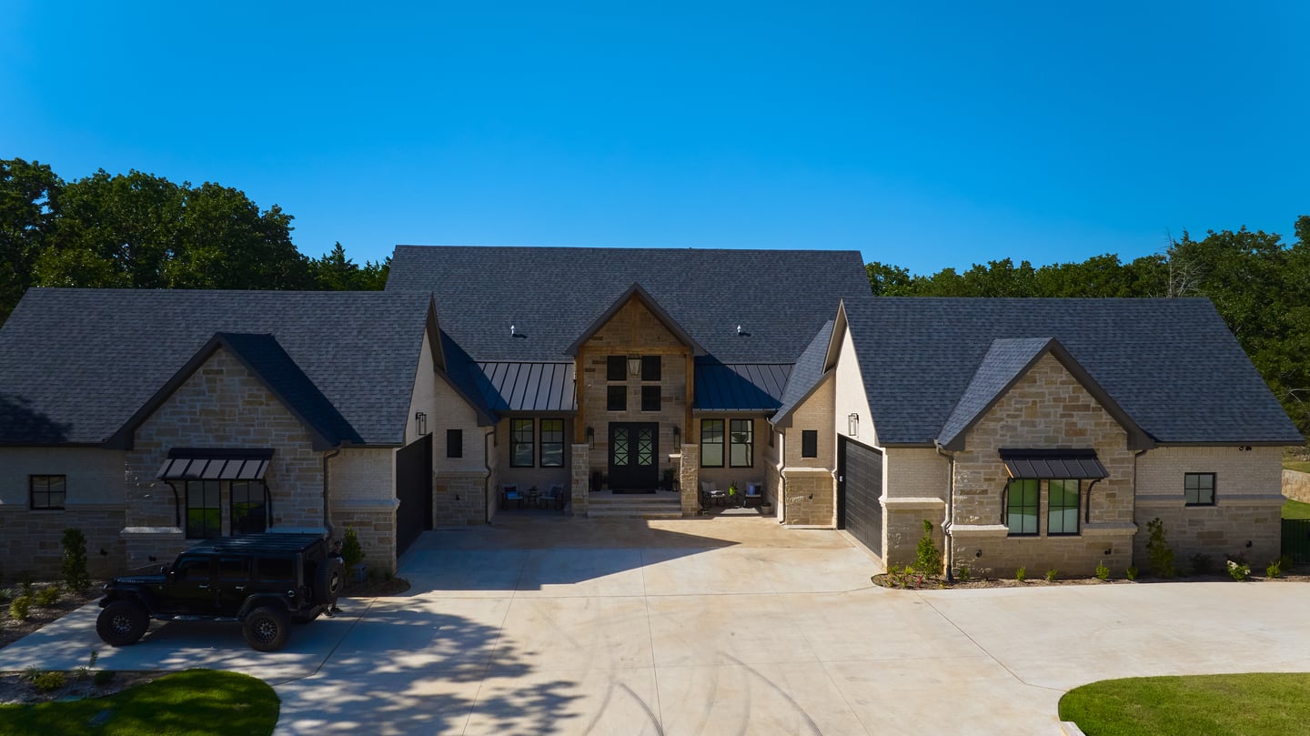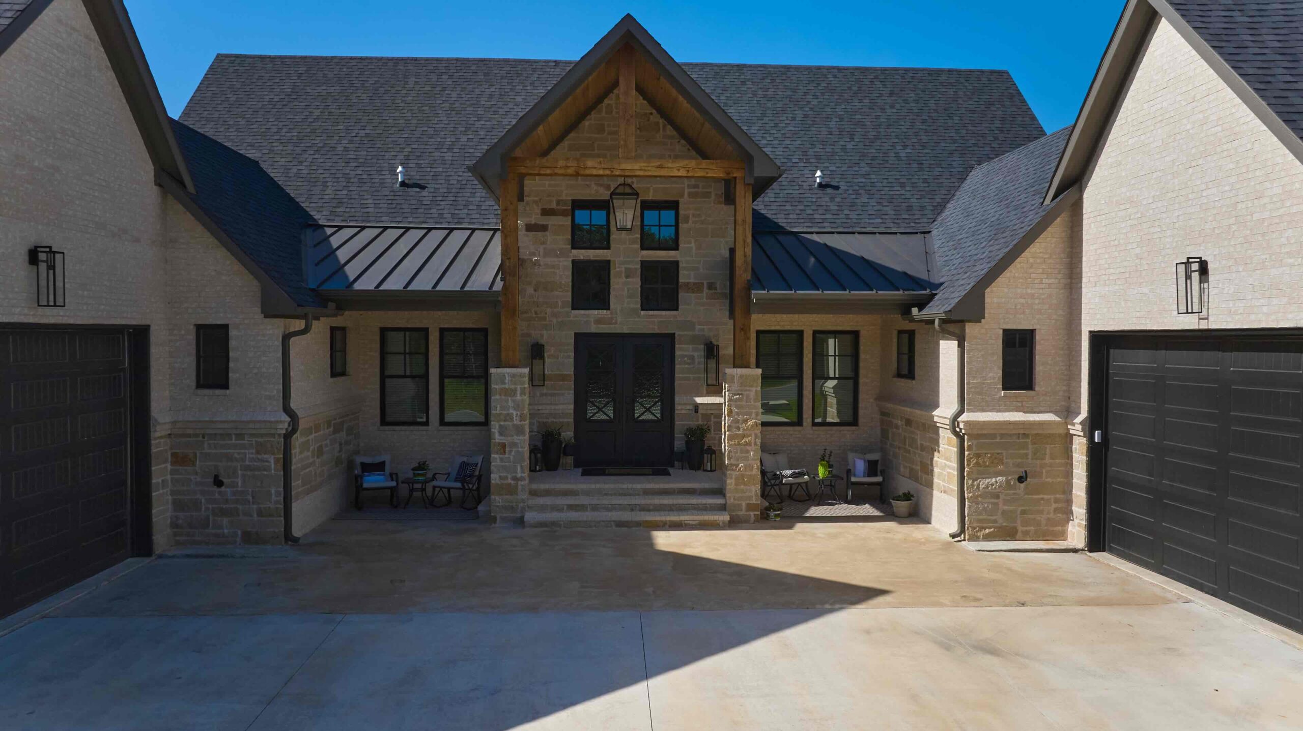 The Rock Creek lot presented a challenge that would have limited a less creative team. The owners needed garages large enough for boats and lake toys — far larger than a standard two-car garage. But in a community like Rock Creek, where design standards protect the character of the neighborhood, a home with oversized garages dominating the front elevation would never have been approved — and would not have been worth building.
